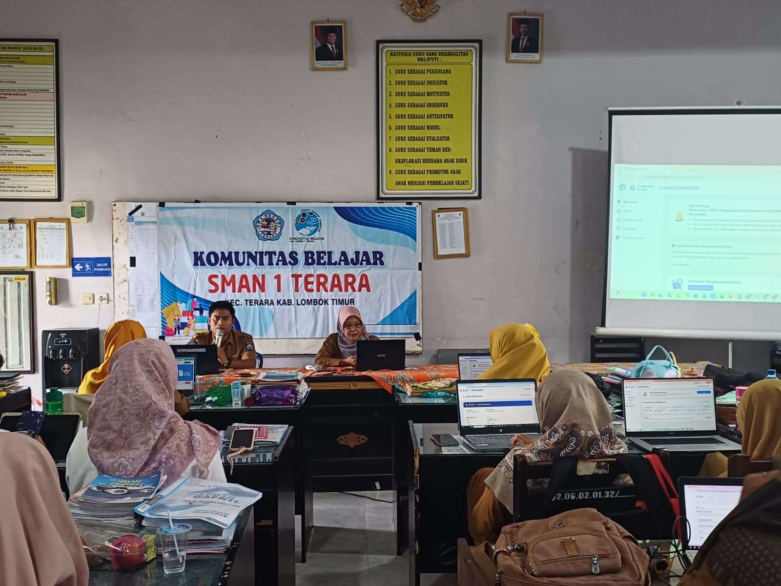Lotim-Komunitas belajar SMAN 1 Terara melakukan pertemuan rutin setelah libur semester ganjil tahun ajaran 2025/2026 pada bulan Desember lalu. Kombel SMAN 1 Terara dipertemuan perdana ini membahas dua poin yakni pengisian pengelolaan kinerja periode Januari s.d. Desember tahun 2026 dipandu langsung oleh Hj. Baiq Malia Sopiani, S.Pd., selaku tim PKG dan pengembangan literasi melalui pelatihan penyusunan soal HOTS di pandu langsung oleh Lalu Irpahlan, S.Pd., wakil kepala sekolah bidang kurikulum, kegiatan dilangsungkan diruang guru. Selasa, ( 20/1/26)