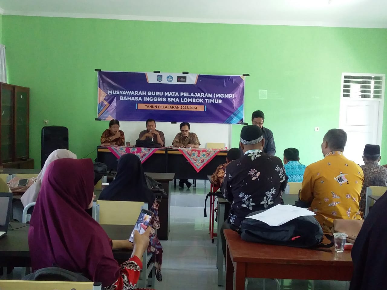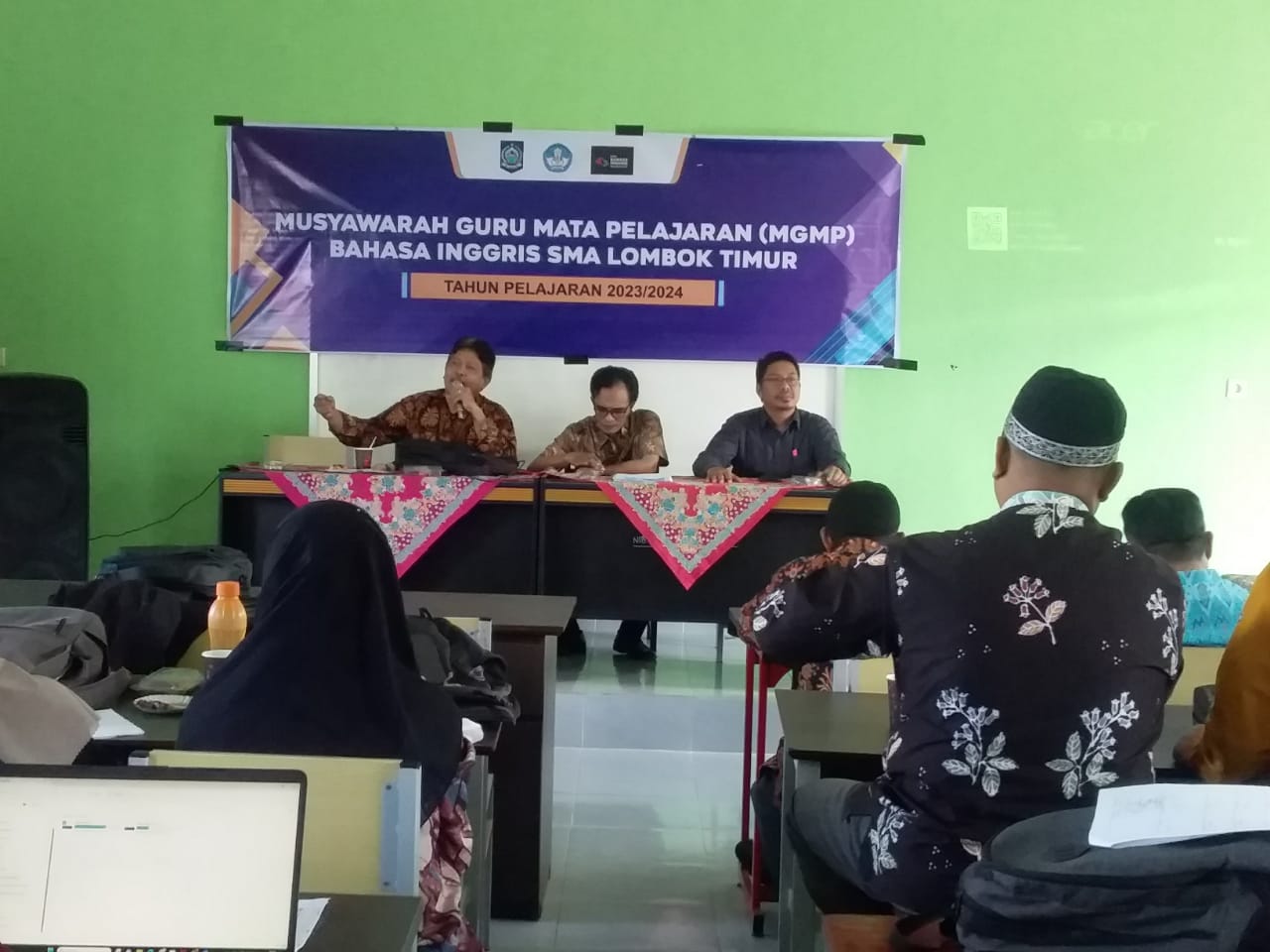 Lombok Timur - SMA Negeri 1 Terara, kali ini ditempati sebagai tempat pelaksanaan kegiatan MGMP Bahasa Inggris se- Kabupaten Lombok Timur. Kegiatan tersebut mulai pada pukul 10.00 Wita, dilangsungkan di ruang leb biologi. Kegiatan MGMP ini dihadiri langsung oleh wakil kepala sekolah bidang sarana dan prasarana (sarpras) Zaenal Abidin, S.Pd. Pengawas bidang mata pelajaran Bahasa Inggris SMA se-Kabupaten Lombok Timur, Zaenal Abidin, S.Pd. dan sebanyak kurang lebih 35 bapak/ibu guru menghadiri kegiatan MGMP Bahasa Inggris di SMA Negeri 1 Terara. Kamis, ( 27/7)