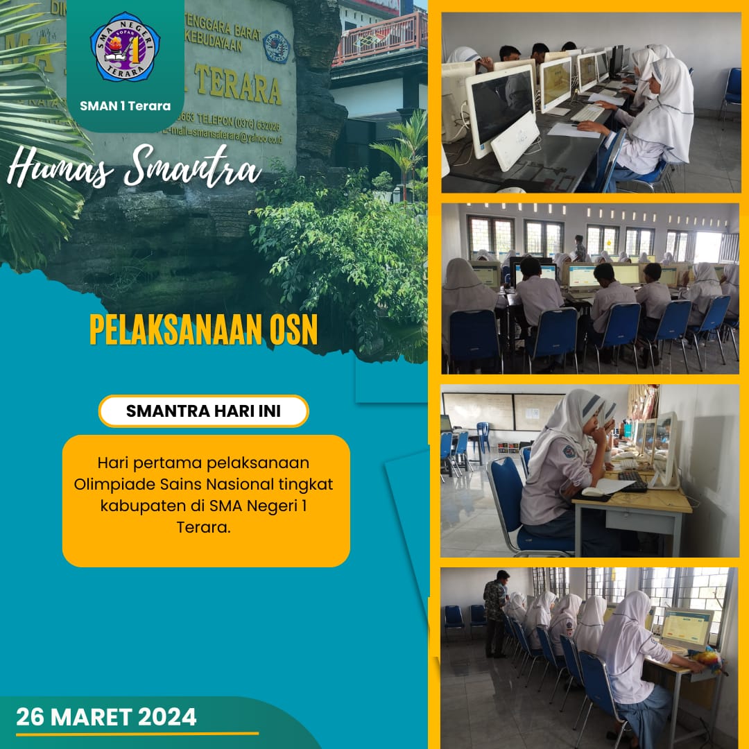 Lombok Timur-Dalam rangka mengukir prestasi siswa/i terbaik SMAN 1 Terara setelah mengikuti pembinaan dan simulasi. Akhirnya, pada hari ini Selasa, 26 Maret 2024 pelaksanaan Olimpiade Sains Nasional Tingkat Kabupaten (OSNK) hari pertama dimulai pada pukul 09.00 Wita. Kegiatan dilasungkan di ruang laboraturium Komputer. Masing-masing mapel diwakili oleh 5 siswa. Mapel yang diujikan di hari pertama terdiri dari 5 mapel yakni matematika, fisika, informatika, biologi, dan geografi dan tercatat sebanyak 25 peserta mengikuti OSNK hari pertama ini.