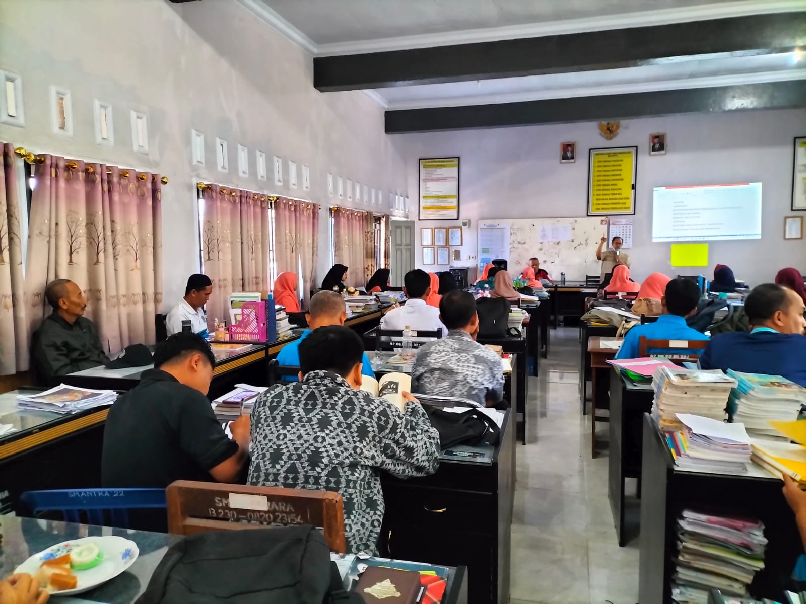 Lombok Timur – Dalam rangka meningkatkan kualitas pendidikan baik secara menajerial mau pun pada bagian administrasi. Pengawas pembina SMA Negeri 1 Terara Toto Raharjo, M.Pd., melakukan pembinaan kepada guru dan staf TU. Pembinaan tersebut bertujuan untuk meningkatkan profesionalisme guru dalam rangka menjalankan tugas sebagai pendidik. Tercatat sebayak 70 guru baik bersetatus ASN (PNS), ASN (PPPK), dan guru tidak tetap (Non PNS). Kegiatan pembinaan dilaksanakan diruang guru.