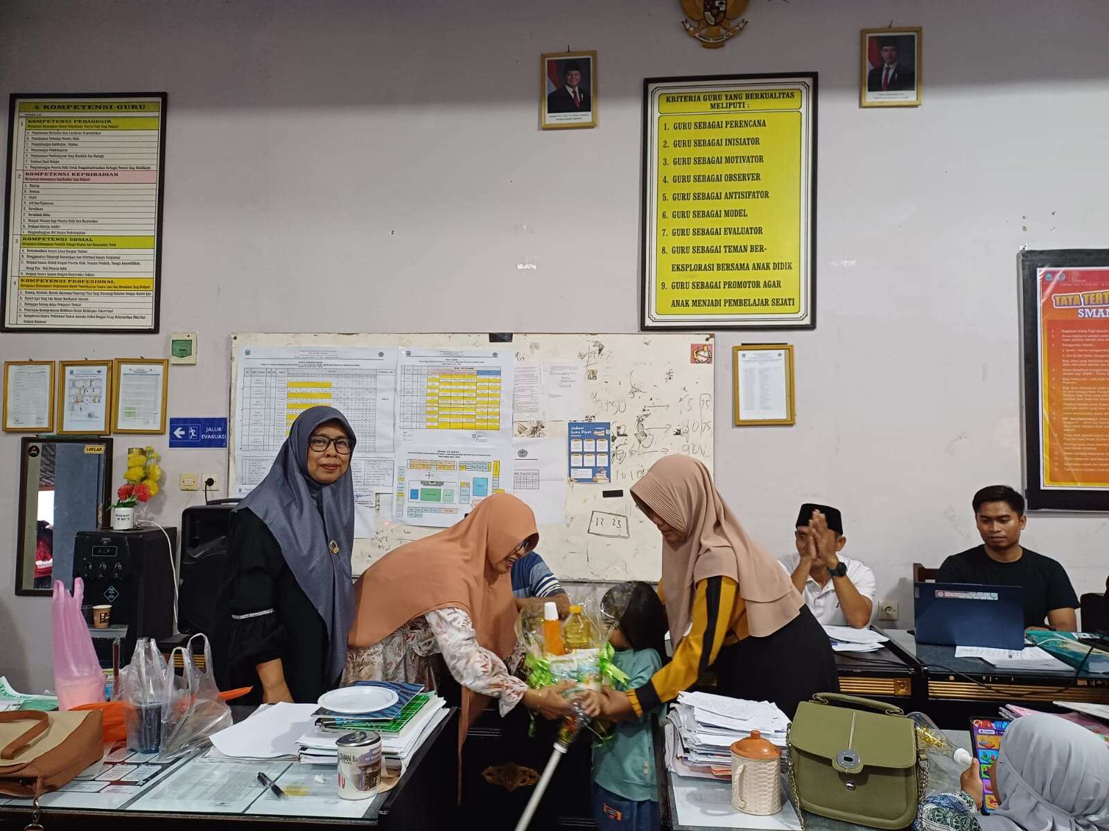 Kegiatan rapat diakhir dengan menggelar santunan untuk anak yatim piatu Ramadan 2025. Kegiatan ini sebagai wadah keluarga besar SMAN 1 Terara berbuat kebaikan terhadap sesama. Dalam hal ini salah satu dari ibu DWP Hj. Animar, S.Pd., mengambil andil dalam memberikan santunan kepada anak yatim piatu, berlangsung di ruang guru.