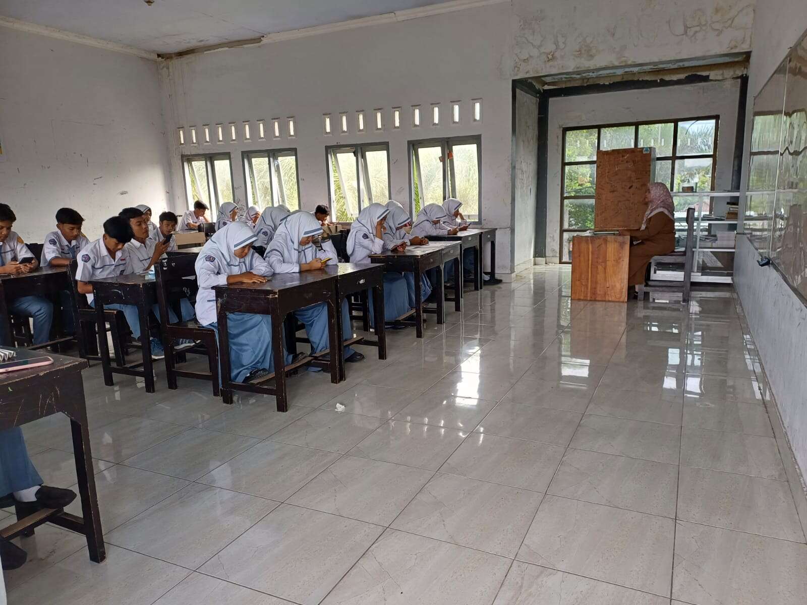 Lotim-Hari kelima melaksanakan kegiatan Sumatif Akhir Tahun( SAT) tahun pelajaran 2024/2025 untuk kelas X dan XI. Kegiatan ini dimulai pada pukul 07.30 s.d. 10.00 Wita. Kegiatan SAT dimulai pada hari senin, ( 26/5) beberapa hari yang lalu. kegiatan SAT ini dilangsungkan sampai hari Kami, (5/6/2025.). Adapun jumlah ruangan digunakan sebanyak dua puluh empat ruangan, terdiri dari jumlah siswa setiap ruangan maksimal sebanyak 36 siswa. Semua soal setiap mata pelajaran dihadapi siswa di susun oleh guru mata pelajaran, sementara jumlah soal setiap mata pelajaran sebanyak lima puluh soal kategori pilihan ganda semua. Senin, ( 2/6 )