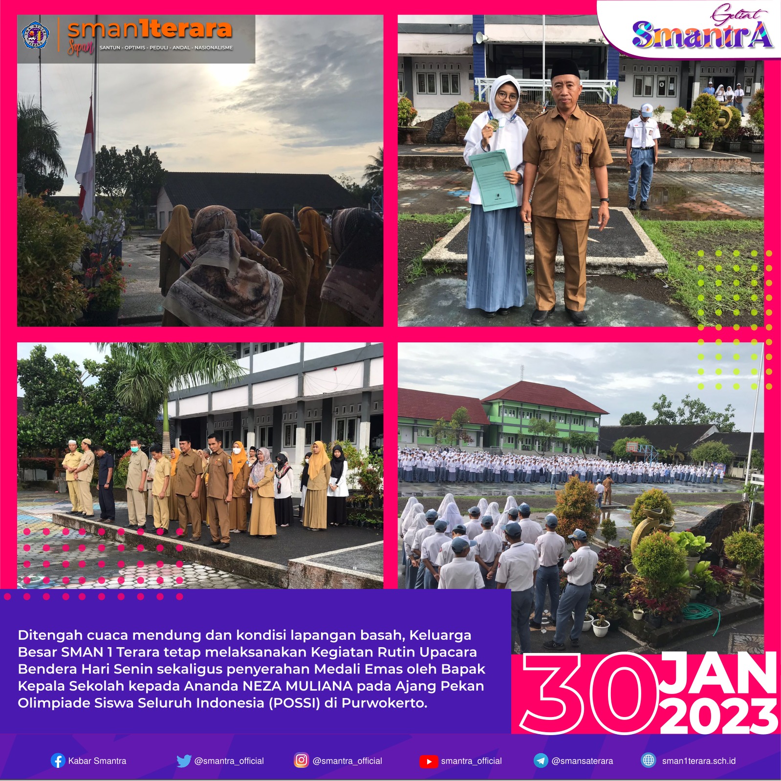 Selaku pembina upacara bendera bapak kepala sekolah SMA Negeri 1 Terara H. Samsul Mujtahid, S.Pd. dalam amanat yang disampaikan yaitu memberikan motivasi kepada seluruh peserta didik SMA Negeri 1 Terara agar lebih giat lagi dalam proses belajar. Di samping itu juga, H. Samsul Mujtahid, S.Pd. memberikan menyerahkan pengharagaan kepada Neza Muliana kelas XI IPS 2 sebagai pemenang olimpiade siswa seluruh Indonesia.