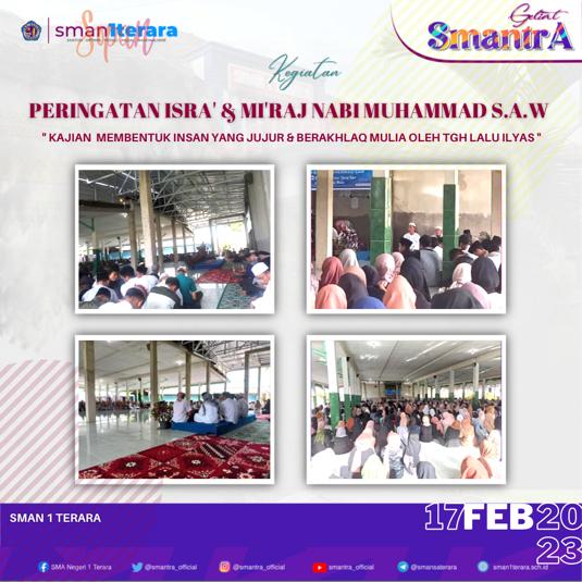 Acara peringatan Isra Mi’raj 1444 H. Dilaksanakan di SMA Negeri 1 Terara, mulai pada pukul 07.00 WITA. Acara dimulai dengan membacakan lantunan ayat-ayat suci alqur’an. Al qur’an adalah mukzizat terbesar yang selalu terjaga keutuhannya sepanjang zaman, yang tentunya harus kita Imani dan kita amalkan. Siapa pun yang membaca dan mendengarkannya, mendapatkan banyak keberkahan. Pembacaan ayat-ayat suci al qur’an kali ini lagi-lagi koriq SMA Negeri 1 Terara atas nama Nea Azkia kelas XII MIPA 2.
