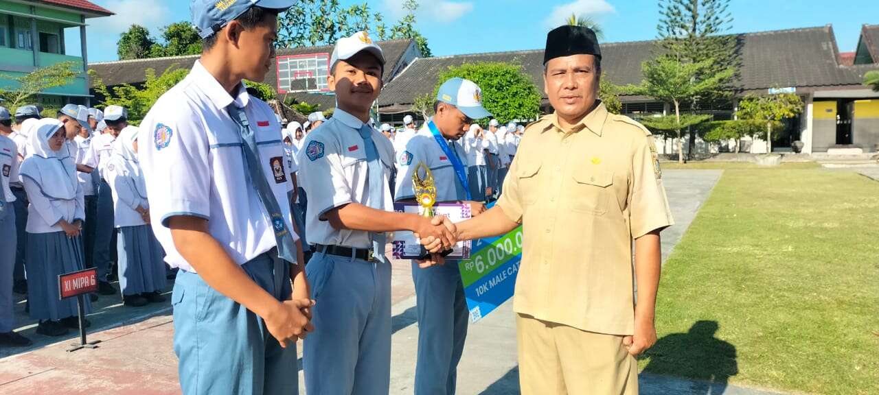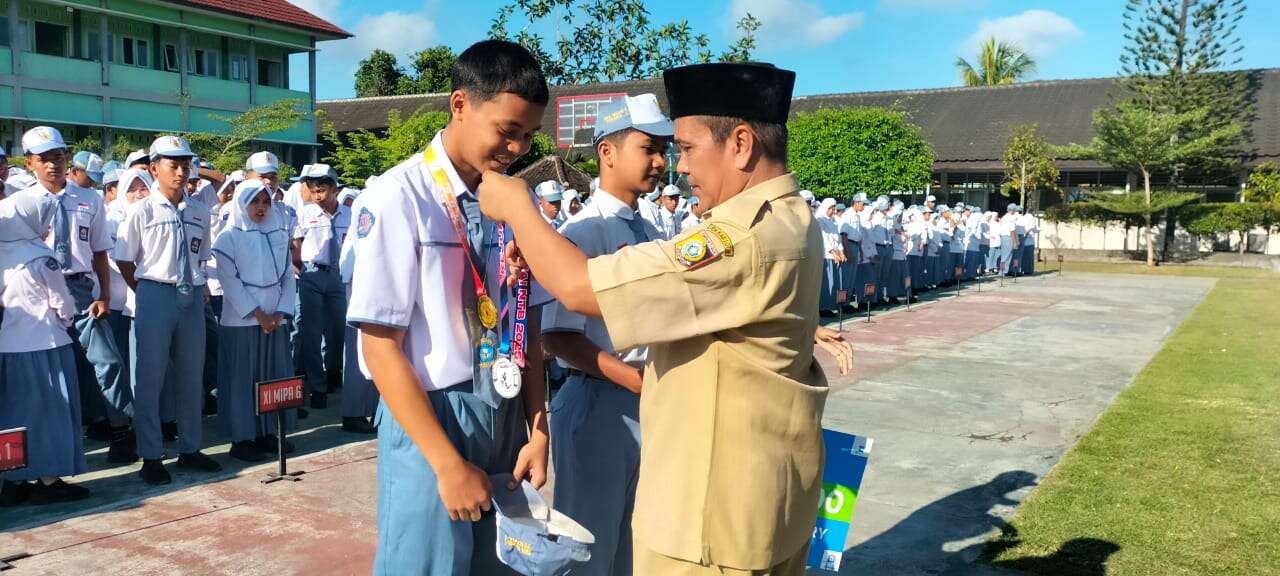 “ Hadiah yang kami berikan tadi dijadikan sebagai meningkatkan motivasi untuk terus belajar dan berlatih. Begitu juga dengan peserta didik yang lain, jadikan prestasi teman-Mu ini sebagai motivasi kalian untuk meningkatkan proses belajar dan berlatihan baik dalam bentuk kegiatan belajar intrakurikuler dan ekstrakurikuler” jelasnya H. Lalu Muhammad Thayib saat menyampaikan isi amanat pembina upacara.